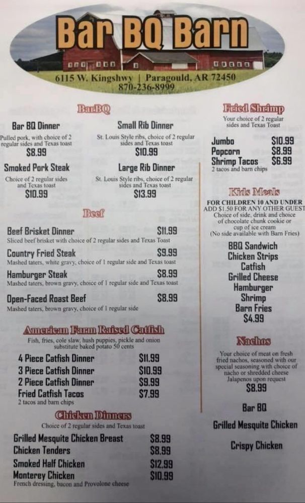 Bar-BQ Barn Menu